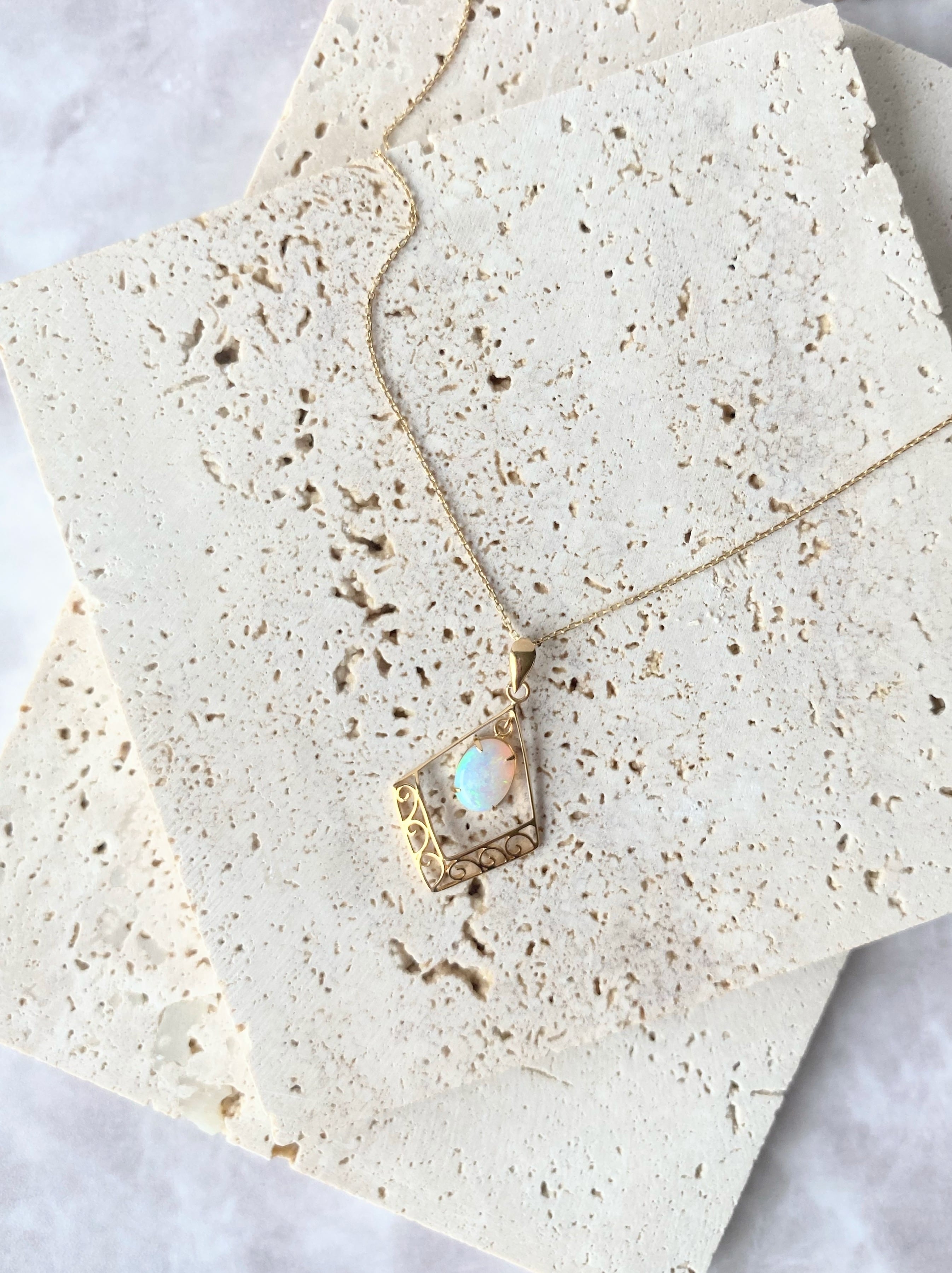 K18YG Scroll Wired Frame ヴィテージ オパールネックレス