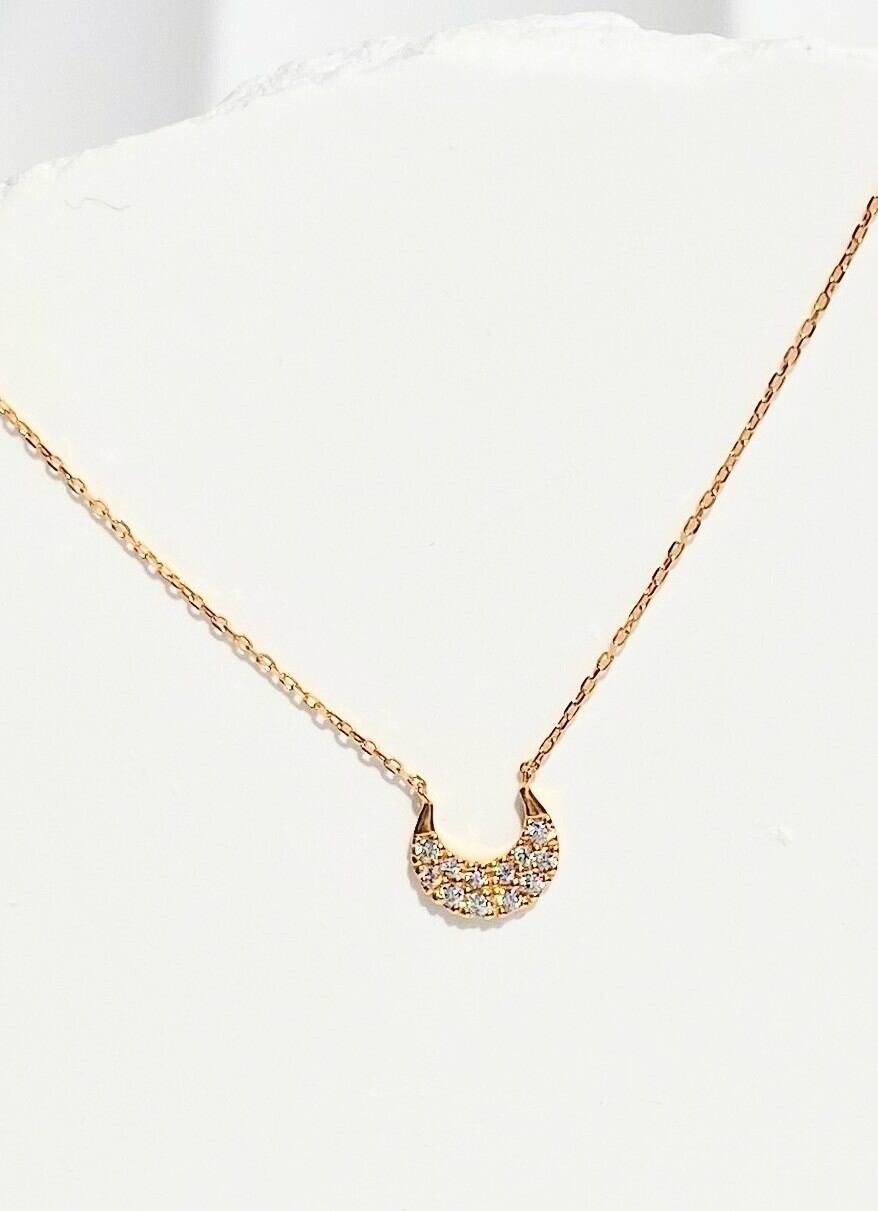 K10 Curvy Crescent Moon ダイヤモンド チャーム ネックレス
